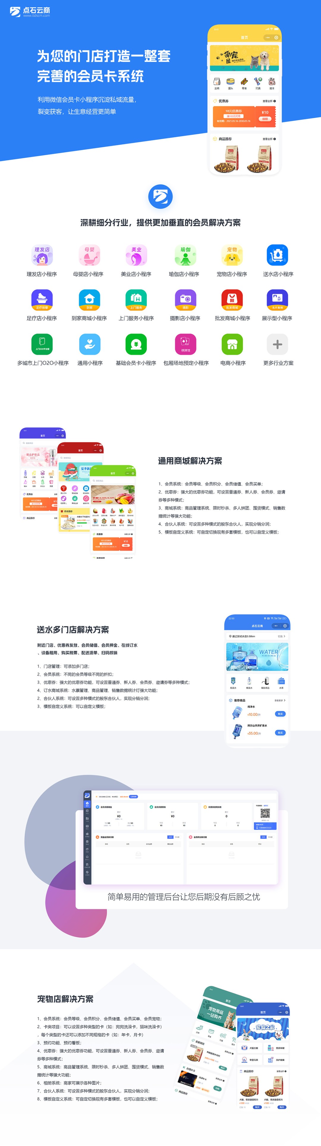 靚點:附近門店、優(yōu)惠券發(fā)放、會員儲值、會員押金、在線訂水、設(shè)備租用、購買稅票、配送派單、掃碼核銷
